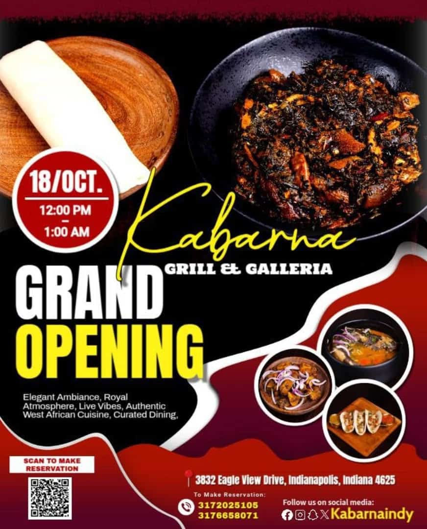 Kabarna’s Grill & Galleria brings a fresh take to West African dining in the heart of Indianapolis. Born from the rich flavors of Nigeria and crafted with culinary purpose, this lounge-style restaurant serves smoked peppers, suya-spiced meats, and palm-rich stews with a modern, elevated edge. Whether you pull up for a seated dinner with family or stop through for a night out that blends culture with ambiance, Kabarna’s is where intentional, soulful cooking meets a fine dining energy.